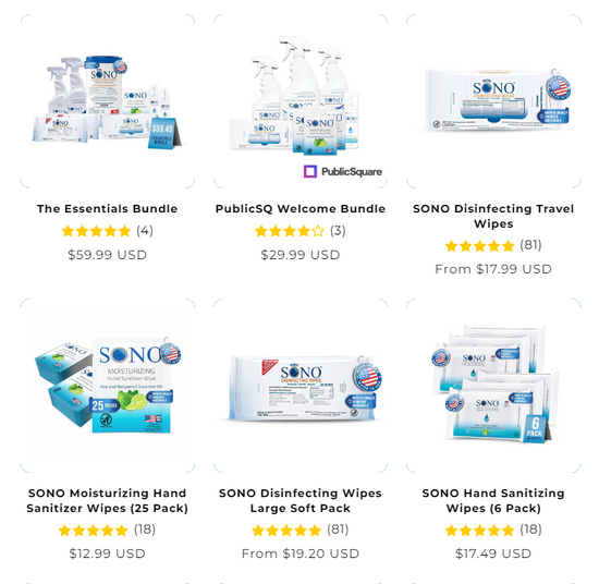 SONO Moisturizing Hand Sanitizer Wipes (25 Pack)